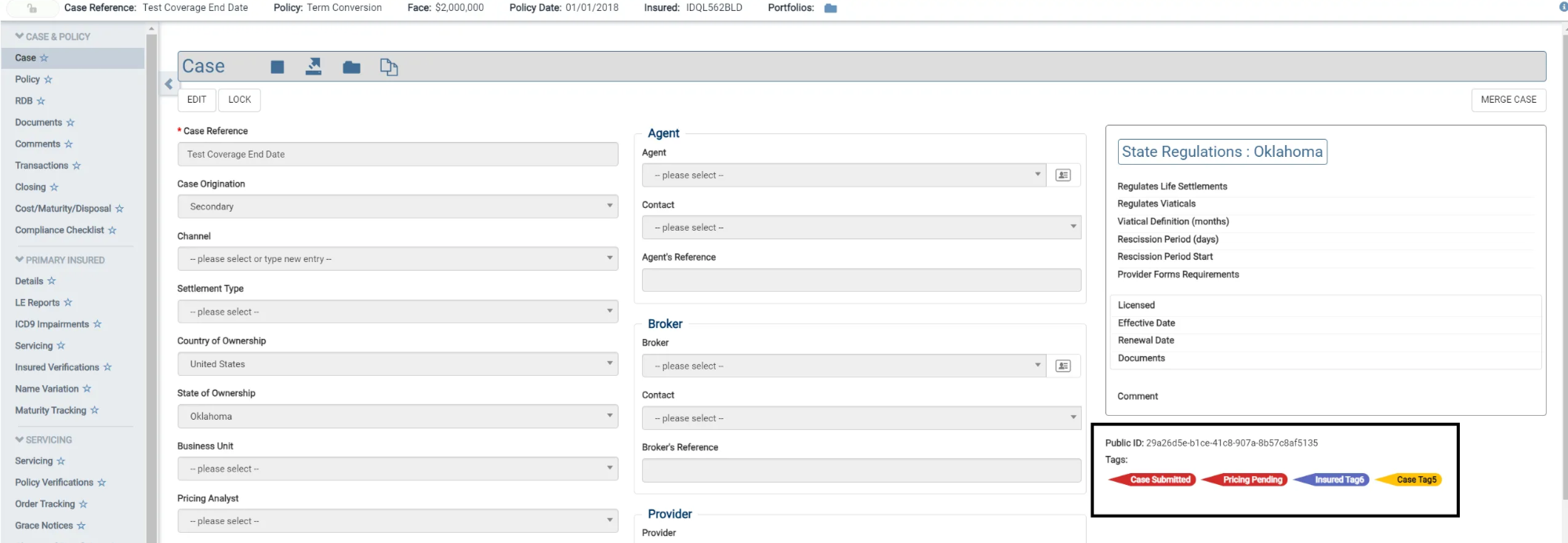 - Expand Case and select Case Tag or expand Primary/Secondary Insured and select Insured Tag