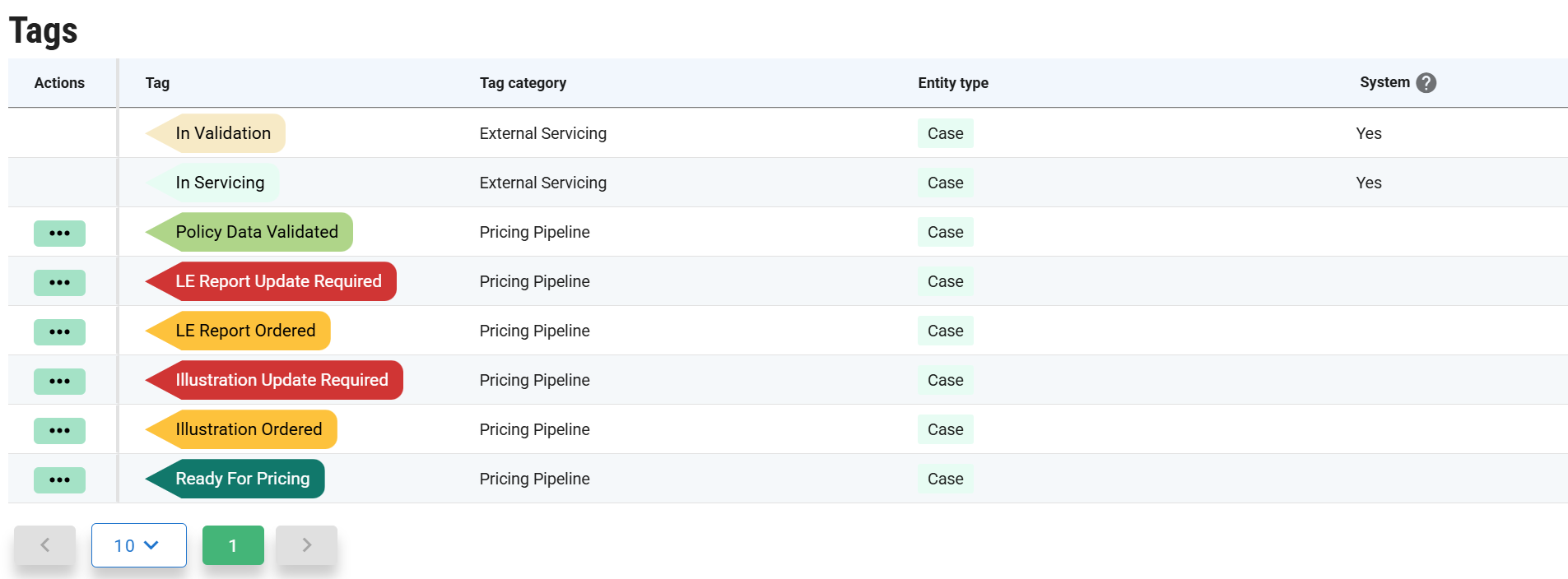 Tags enable you to mark one or more states for a Case or an Insured. A Case or Insured can be marked in multiple states simultaneously. Each Tag can be grouped within a Tag Category.