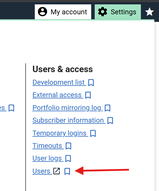 - Click on the Settings menu and select the Users page.