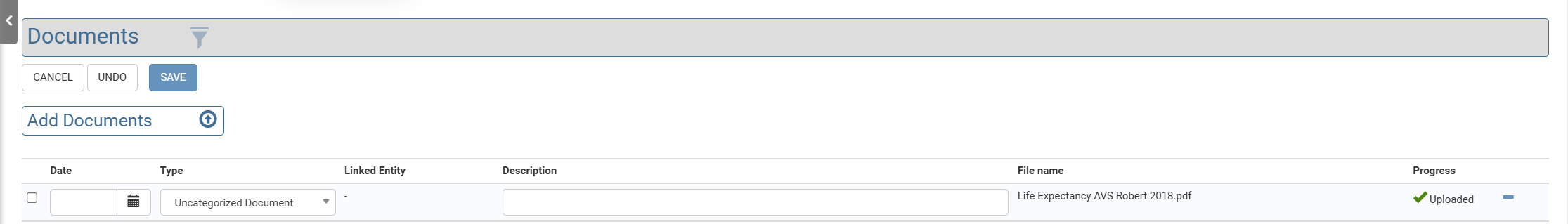 While Documents are uploading, you may start to set properties on the Documents, such as the Date, Document Type or Description. We will only prevent you from editing further if a problem occurs with the upload, such as if the Document is of an unsupported type.