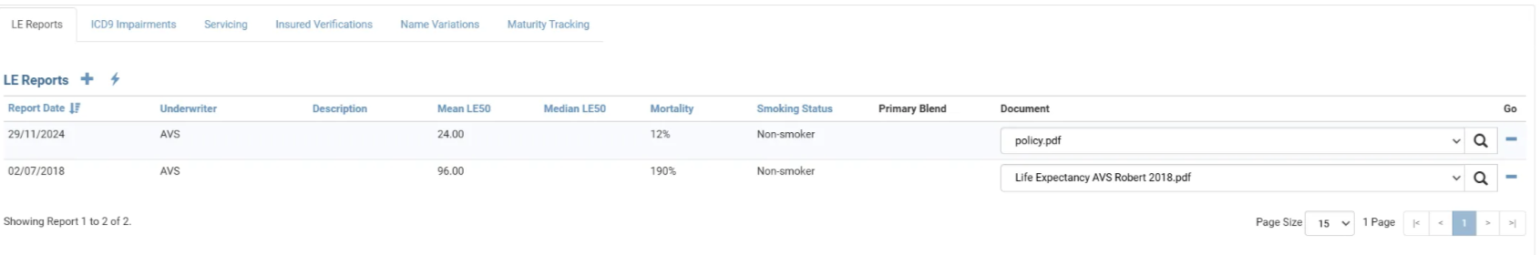 The popup will change to a “Processing…” message and then a “Completed…” message. The Documents list will refresh and you will see your new Document under the appropriate Insured list and a new LE Report will have been added under the Insured, LE Report tab.