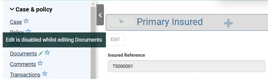 Due to some current limitations, you cannot edit Documents through the Documents tab if you’re performing another edit elsewhere in the Case Summary. Similarly, you will not be able to start an edit elsewhere that could potentially change Documents whilst you are editing the Documents tab.