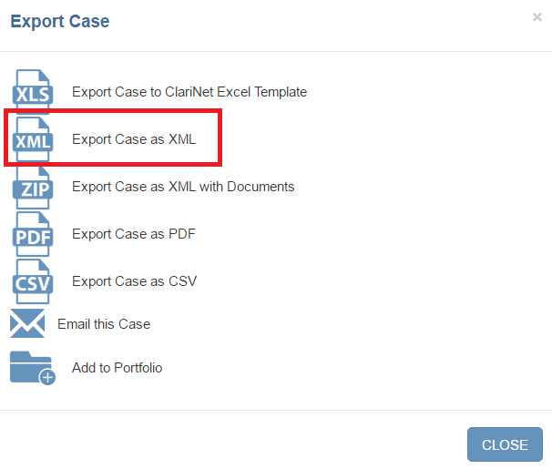 - Import the edited XML File by selecting the Menu Button in the top bar, then Cases, Upload Data