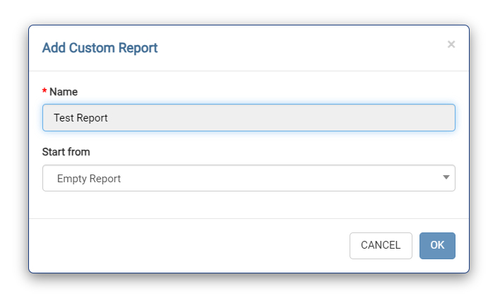 Creating a Custom Report is done from the Export and Report Settings page. This is accessed from the Exports & Reports link under the Settings menu. To create a Custom Report, click on the Add icon in the Custom Reports section.
