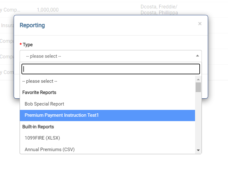 All the favourite reports will be listed first under the label Favourite Reports on reporting modals when accessed from