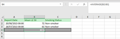 The key function here is SortBy , which takes two arguments - the first expression is that one to sort by. In this case, we are acting upon the Underwriter Report entity that has the field ReportDate within it. The default would be ascending order, which we do not want as we want to target the most recent date - so we use the argument "DESC" which indicates to sort in descending order. We then use the First() function to access the first item in our sorted collection, and output the Mean LE 50 field from it.