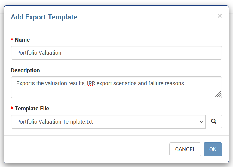 Export templates requiring a portfolio valuation may only be run from the Portfolio, Reporting tab.