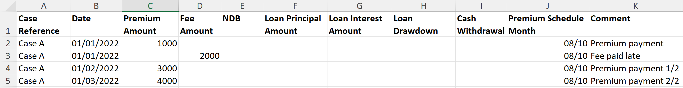 And then you upload a file with the following data intending to replace those Payments with updated information: