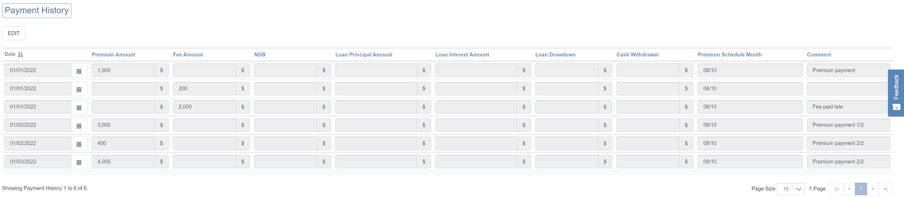 Row 6 New Payment created as no Payment existed for the Date and Comment. This is because the Date of the Payment is different.