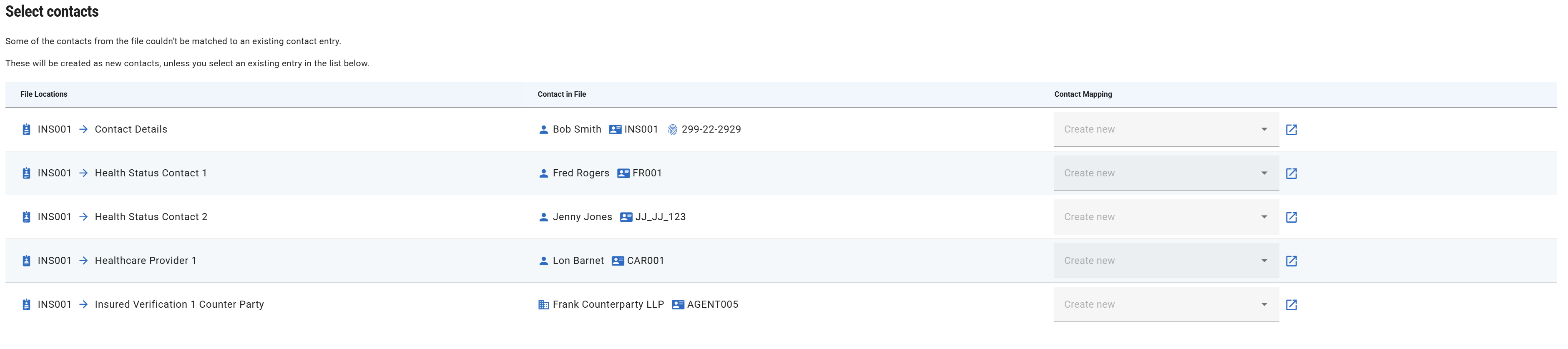 | Contact in File | The details from your excel template about the contact - Name, client reference, SSN if available. |
