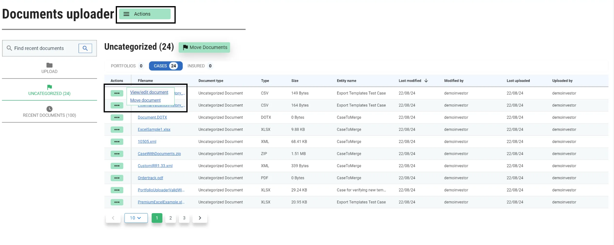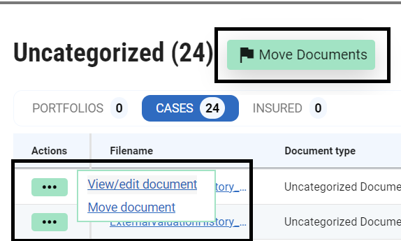 This feature enables you to view all the uncategorized documents in one place and edit the document type in order to sort and place them in the right location.