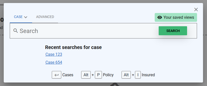 In the middle of the Navigation bar you’ll found your Search which provides functionality for Searching case or insureds information.