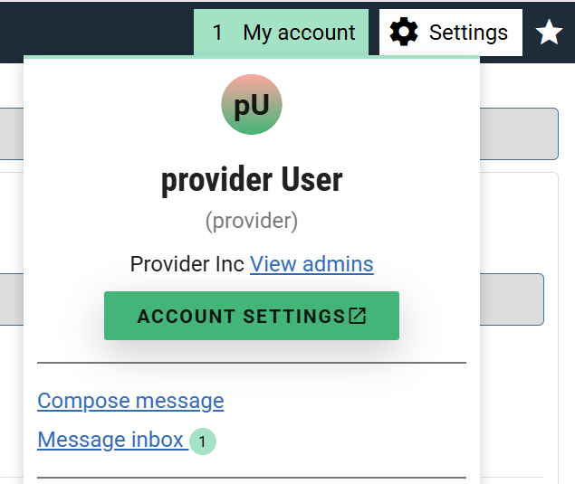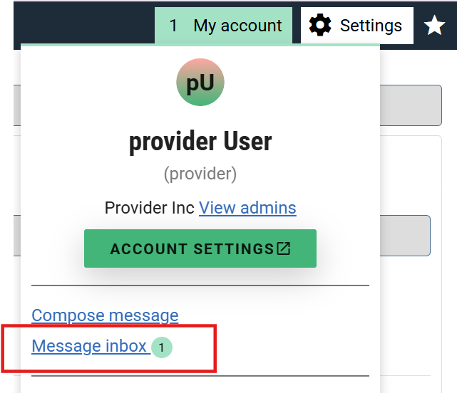 “Message inbox” can be accessed under the “My account” menu. A green badge will display how many unread messages are in your inbox.