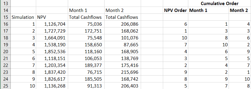 - Cumulative: this report takes all the Monte Carlo simulation draws in each month and orders them by total cashflows.