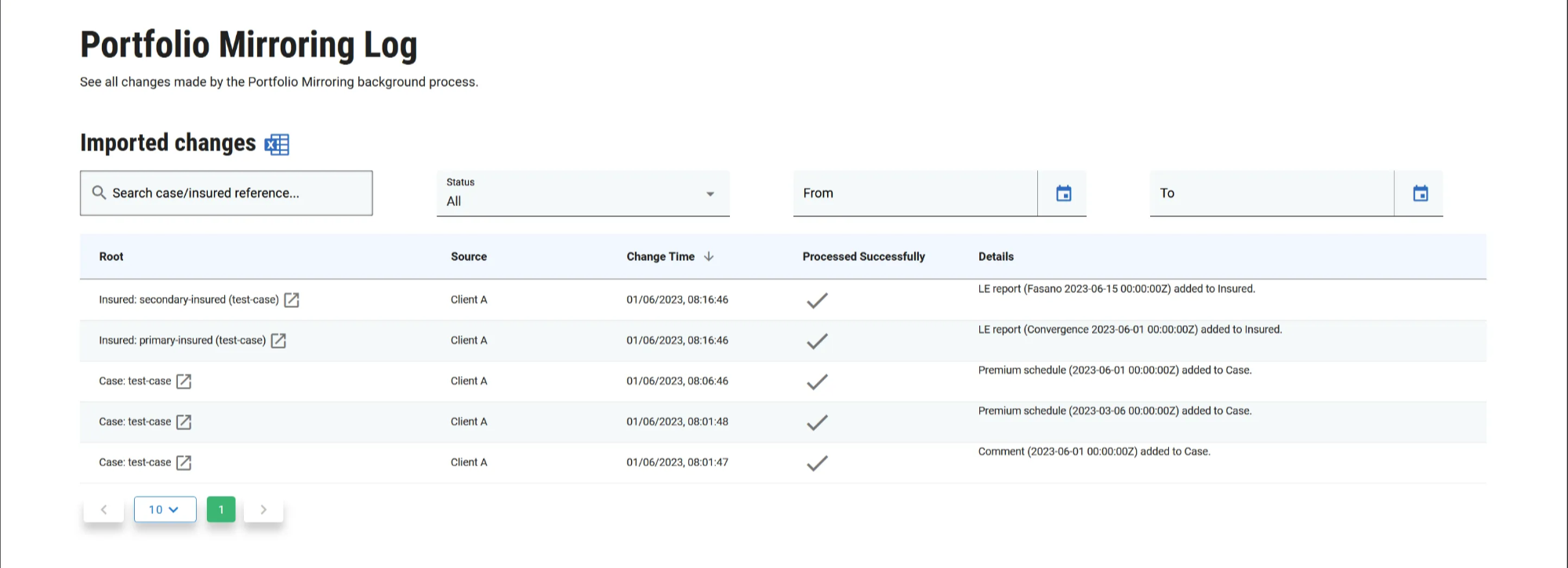 The set up of portfolio mirroring is undertaken by ClearLife. Once configured, any change to a mirrored data point in the source case(s) will be sent to the case(s) in the receiving account. This process typically happens within 30 minutes.