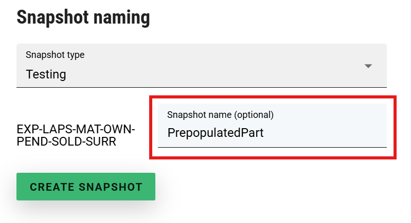 The prepopulated part of the snapshot type is shown below when creating a snapshot with that type. Having a pre-populated editable part of the snapshot name is optional. The user is still able to edit this part of the snapshot name, if they wish to do so.