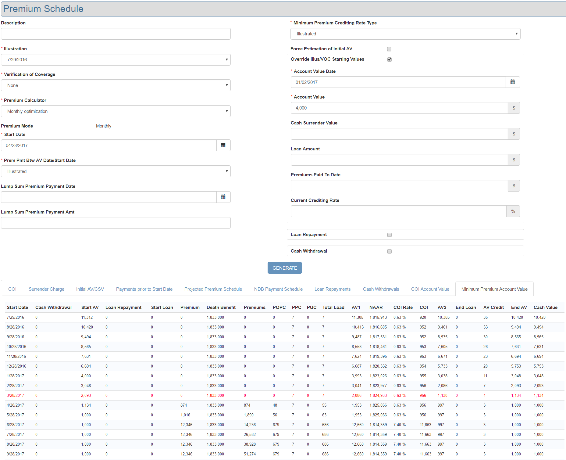 There are pricing scenarios where the buyer of a policy requires the seller to make a lump sum premium payment, for example to increase the account value such that there is no risk of the policy going into grace.