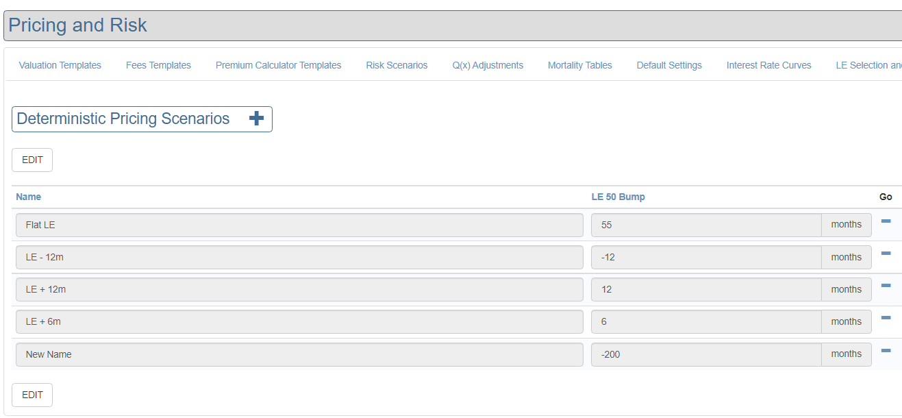 - Deterministic (Value Date): a date of death is calculated from Value Date plus the bump specified in the Deterministic Scenario drop-down. For example, if value date is 19-June-2019 and we specify LE + 12m, the date of death will be 19-June-2020.
