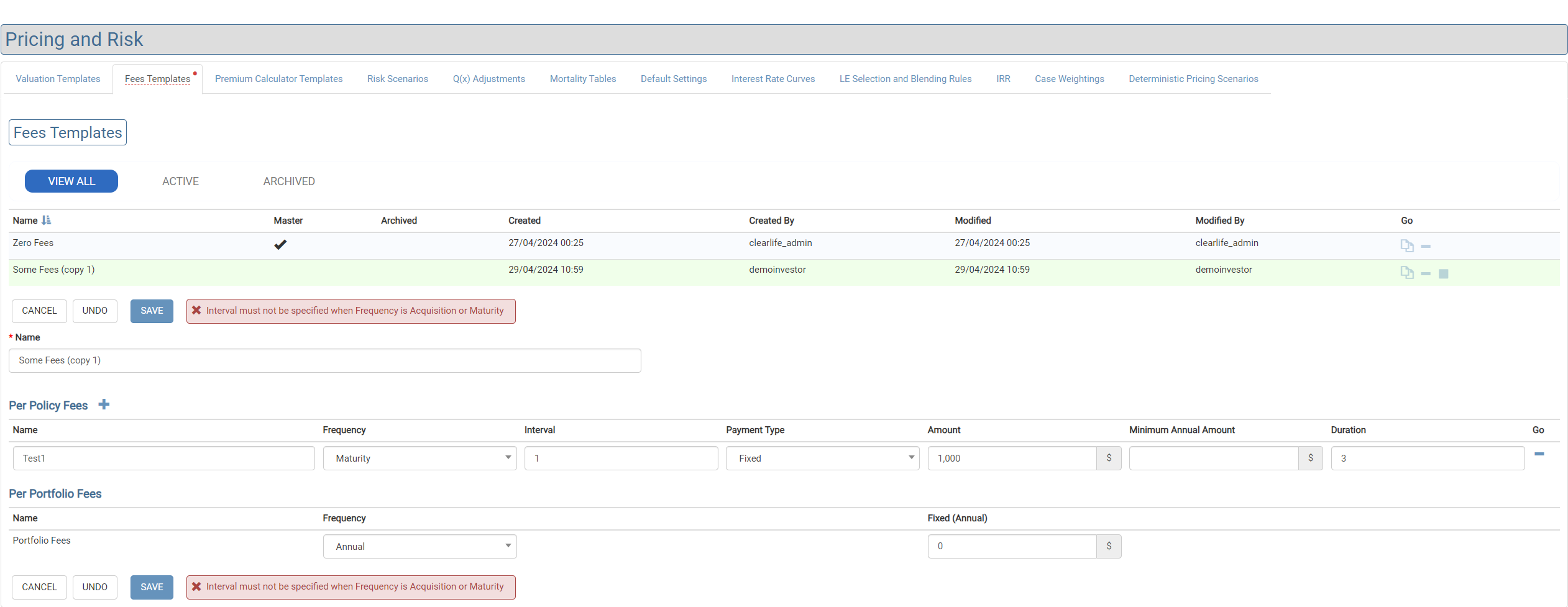 ClariNet has the ability to model fees as part of both single case and portfolio valuation. Fee amounts are managed in Pricing and Risk.