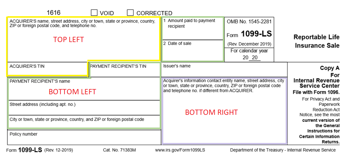 Bottom Right ("Entity" / "Acquirer's information if different from Acquirer")