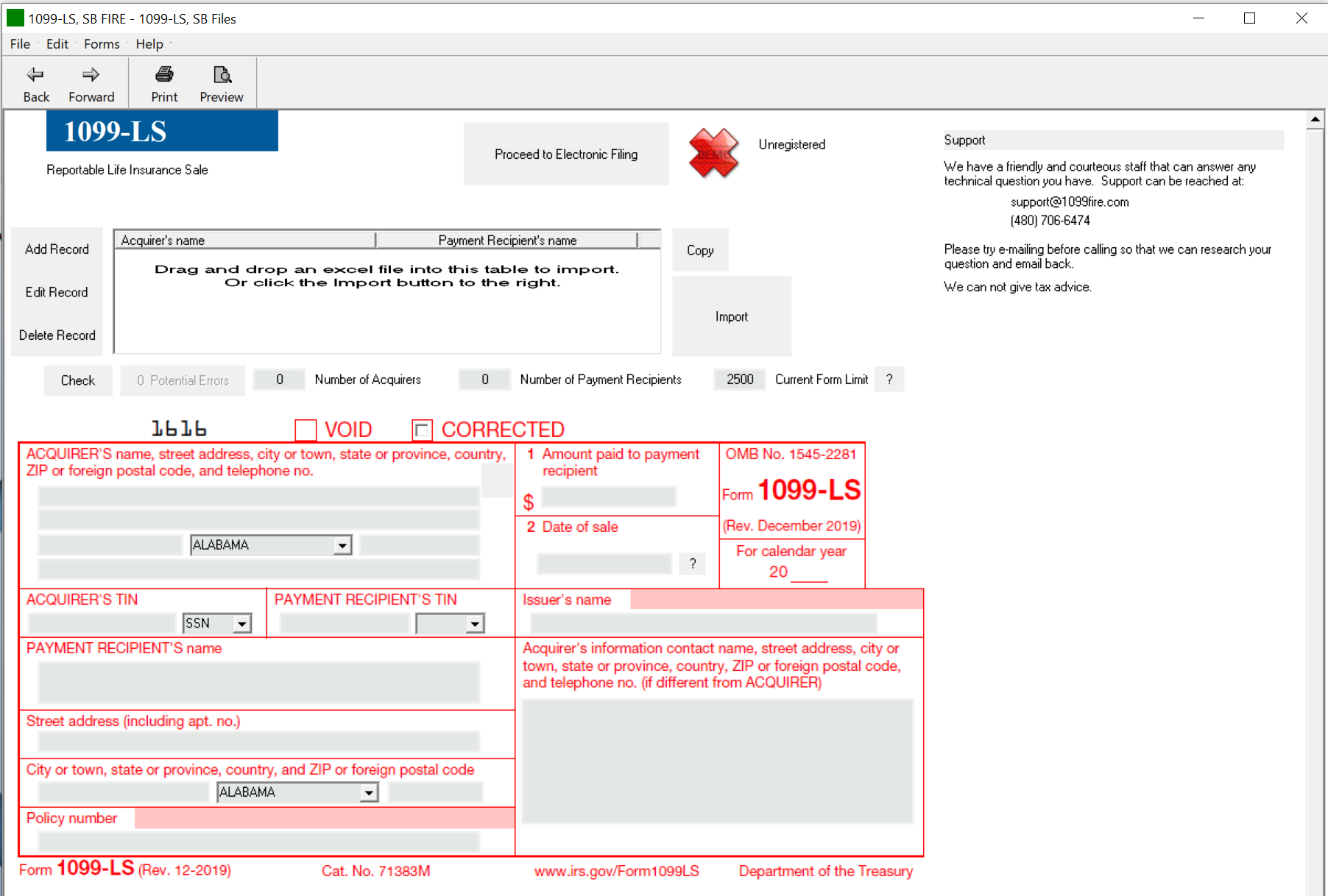 This Excel file is designed to be used with the 1099FIRE software to generate 1099-LS forms. This application allows the import of an Excel file (with extension xls or xlsx) via the Import button or the drag and drop area. More information is available at https://www.1099fire.com.